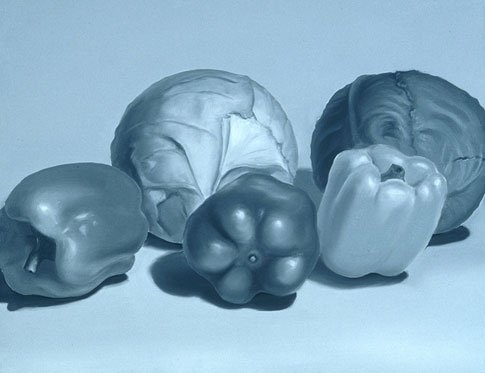 The cabbage is loosely blended to strengthen the illusion of three-dimension.