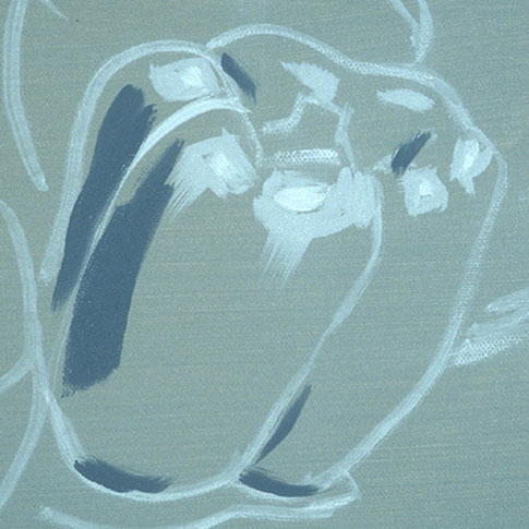 The drawing is made with thinned white paint on a toned canvas (See Canvas). White is used because it will create the least contamination of subsequent colors. The drawing should remain simple because a complex drawing would soon be painted over and lost.